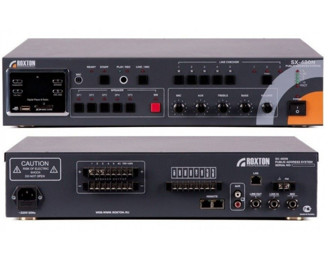 - Возможность подключения удалённой микрофонной консоли ROXTON RM-05;