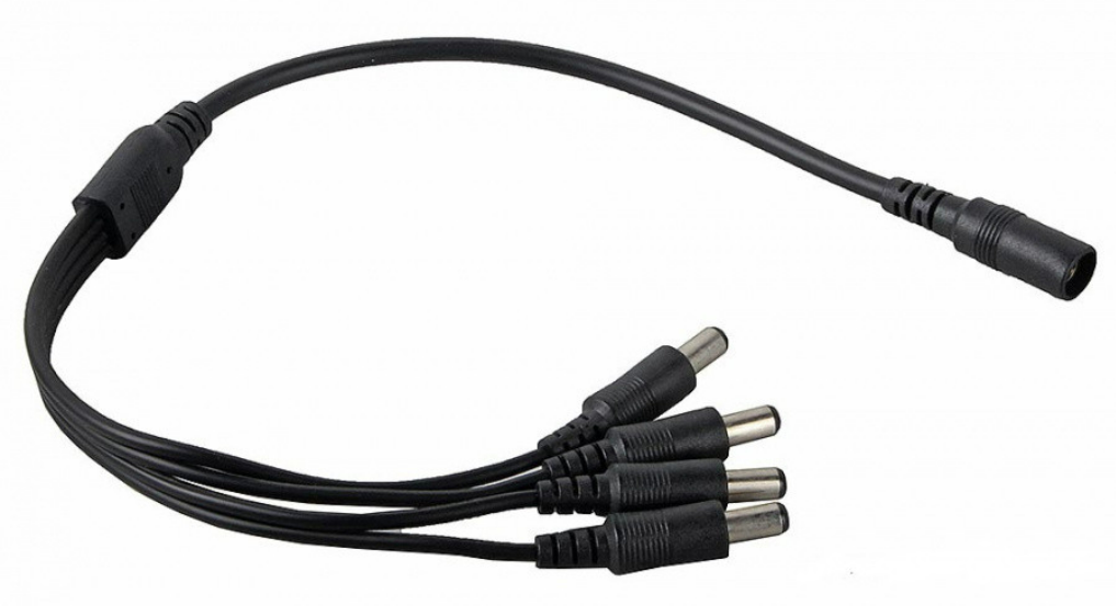 Соединительный кабель для разветвления линии питания 1 гнездо DC (внутренний контакт 2,1 мм) на 4 штекера DC (2,1×5,5×9,5 мм)